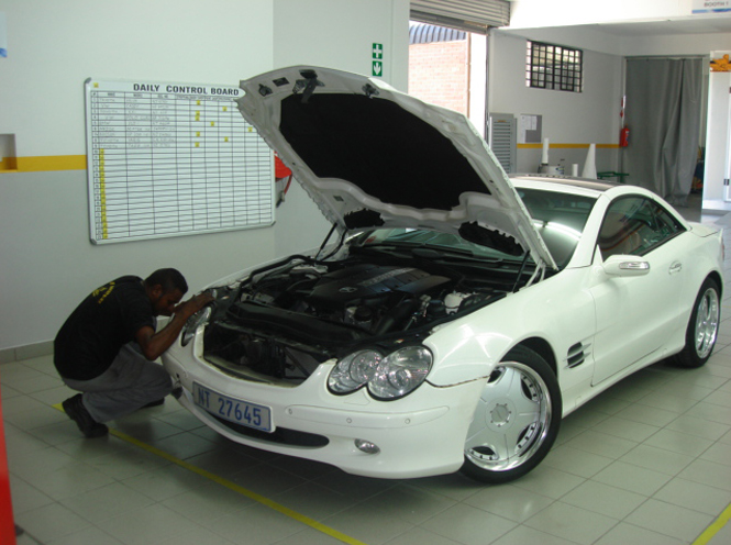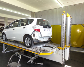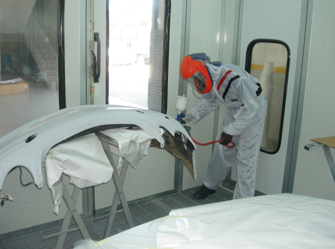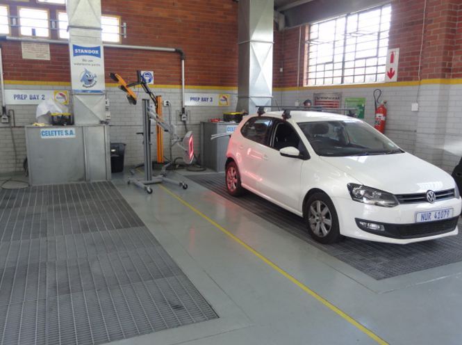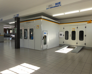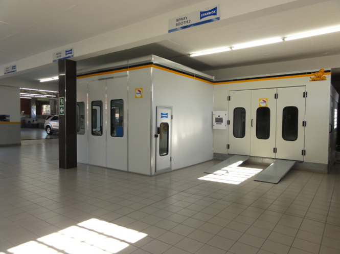 The nucleus of our operation where all administration is automated is to facilitate efficient processing of claims and quotations. Customers are able to receive up to date information with regards to their vehicle progress. We have qualified journeymen to man the panel beating department using specialized equipment. State of the art chassis equipment and factory approved welding machines are used in order to ensure and maintain precision repair standards. All the equipment used in our panel shop guarantee that the most stringent factory specifications have been met. Our paint shop uses the most sophisticated dust free pneumatic preparation systems. The paint preparation system totally excludes water therefore reducing any chance of corrosion on any repair work done. The paint shop is also equipped with fully computerized and automated spray booths and colour lab. This ensures the most accurate colour matching and dust free finishing on any paintwork. We have also recently installed the latest Standox waterborne paint technology as per factory standards.